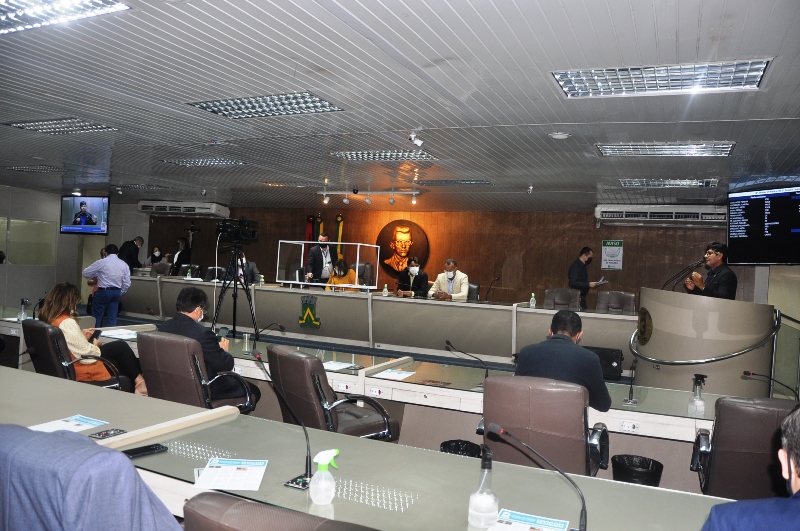Com a ausência para cumprir agenda administrativa no Tribunal de Contas do Estado, o vereador Marinaldo Cardoso (Republicanos) não presidiu a sessão nesta quinta-feira (17). A terceira vice-presidente da CASA, vereadora Valéria Aragão (PDT) esteve à frente dos trabalhos da 18ª sessão ordinária da Câmara Municipal de Campina Grande, realizada em formato híbrido, que contou com a participação de 19 parlamentares. Os trabalhos foram secretariados pelo primeiro secretário, vereador Saulo Noronha (SD).