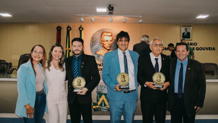 A Câmara Municipal de Campina Grande realizou, na manhã desta quarta-feira (26), logo após a sessão ordinária, uma cerimônia de reconhecimento aos advogados Leidson Queiroz Farias, Thélio Queiroz Farias e Ricardo Alves Souto, que receberam do Poder Legislativo de Campina Grande a Medalha de Honra ao Mérito Municipal. A propositura foi apresentada pelo vereador Olimpio Oliveira.